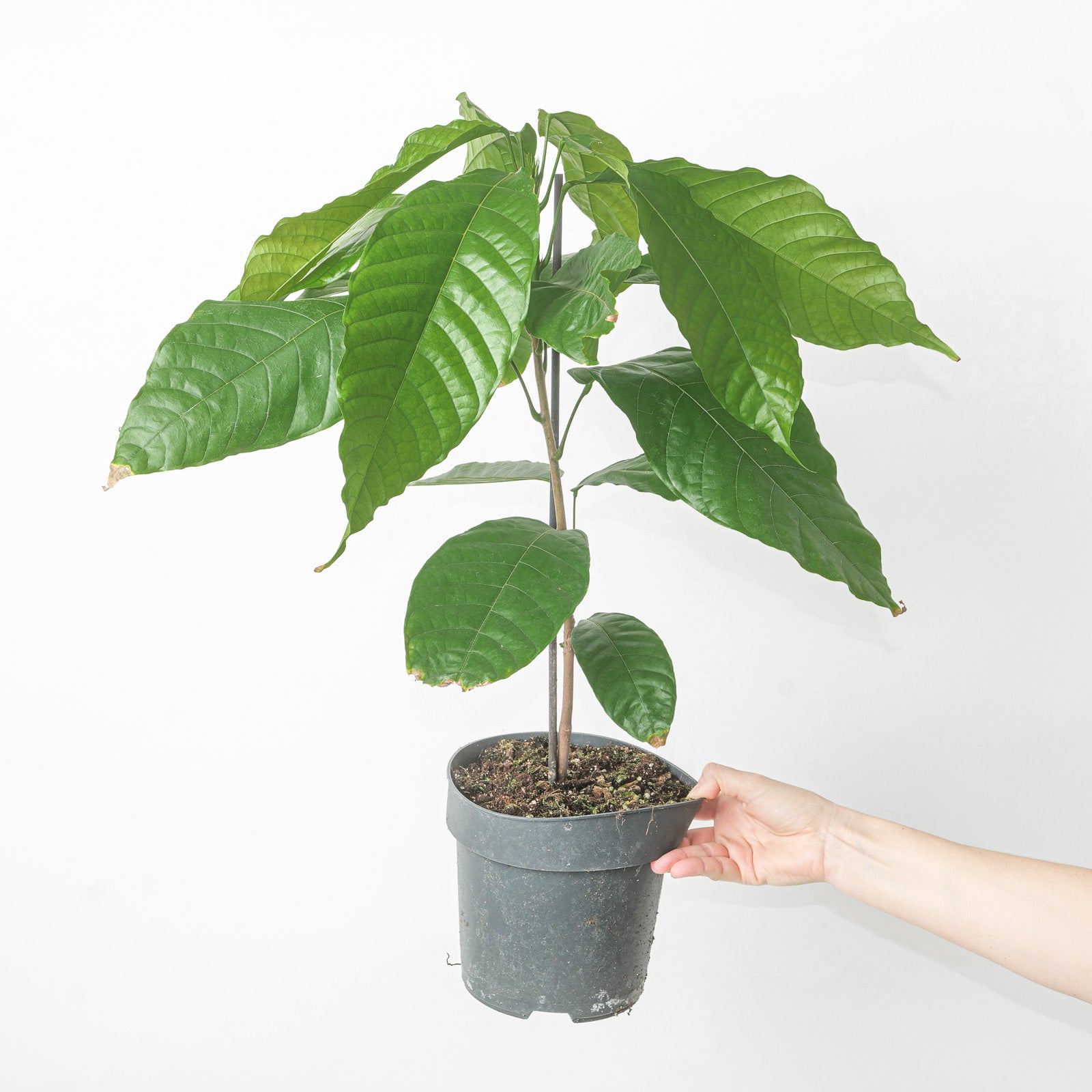 Water: Keep the soil evenly moist but well drained. Water thoroughly and allow excess to drain; avoid letting the tree sit in water. Because cacao comes from humid tropical regions, consistent moisture is important, but soggy soil will lead to root issues.