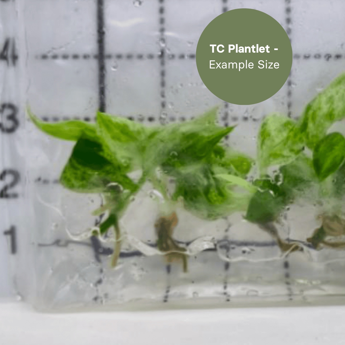 Please note: This is a pre-order from our partner lab, see the timeline below for expected delivery dates.. The plant will arrive in a single package as per the image and will be fresh out of flask. Please read the section on how to acclimate TC before purchasing. With variegated plants there is some variability in the first leaves, please see the images as examples of what you will receive, rather than the exact specimen.