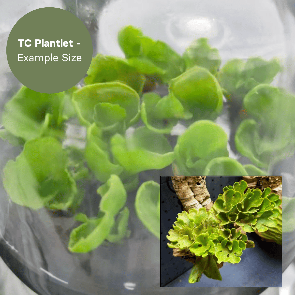 Please note: This is a pre-order from our partner lab, see the timeline below for expected delivery dates.. The plant will arrive in a single package as per the image and will be fresh out of flask. Please read the section on how to acclimate TC before purchasing. With variegated plants there is some variability in the first leaves, please see the images as examples of what you will receive, rather than the exact specimen.