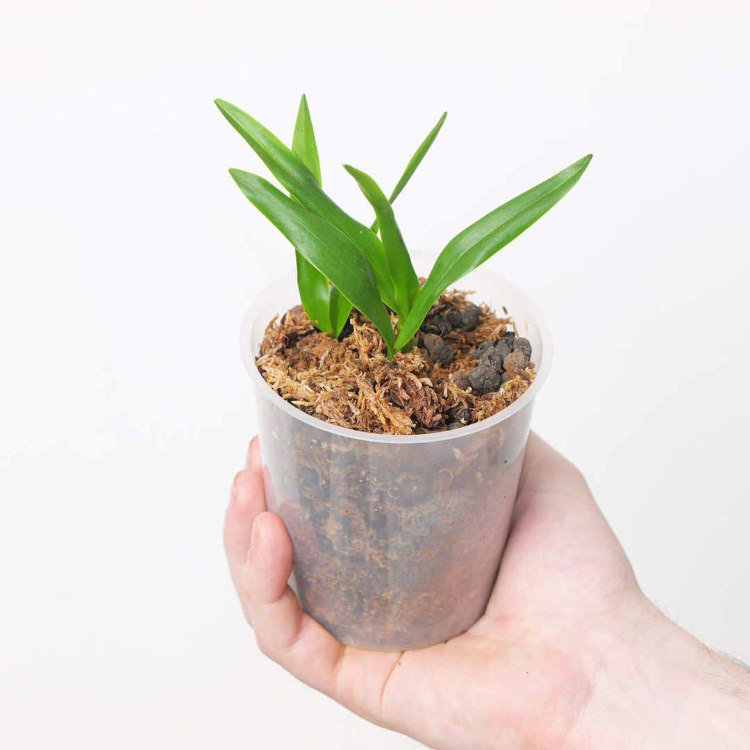 Humidity: This orchid prefers high humidity levels, ideally above 70% throughout most of the year. To maintain such humidity indoors consider using a humidifier or placing the plant on a humidity tray. Given its high humidity requirements and smaller size, Bulbophyllum falcatum 'Dark Form' is well-suited for cultivation in terrariums.