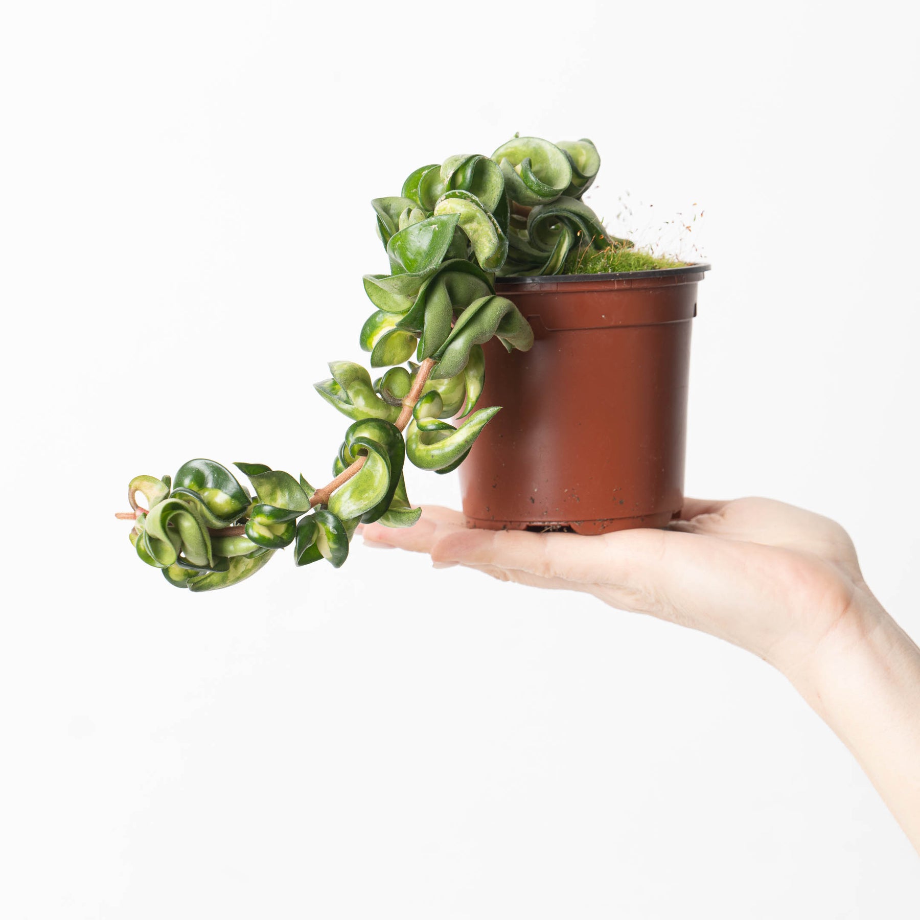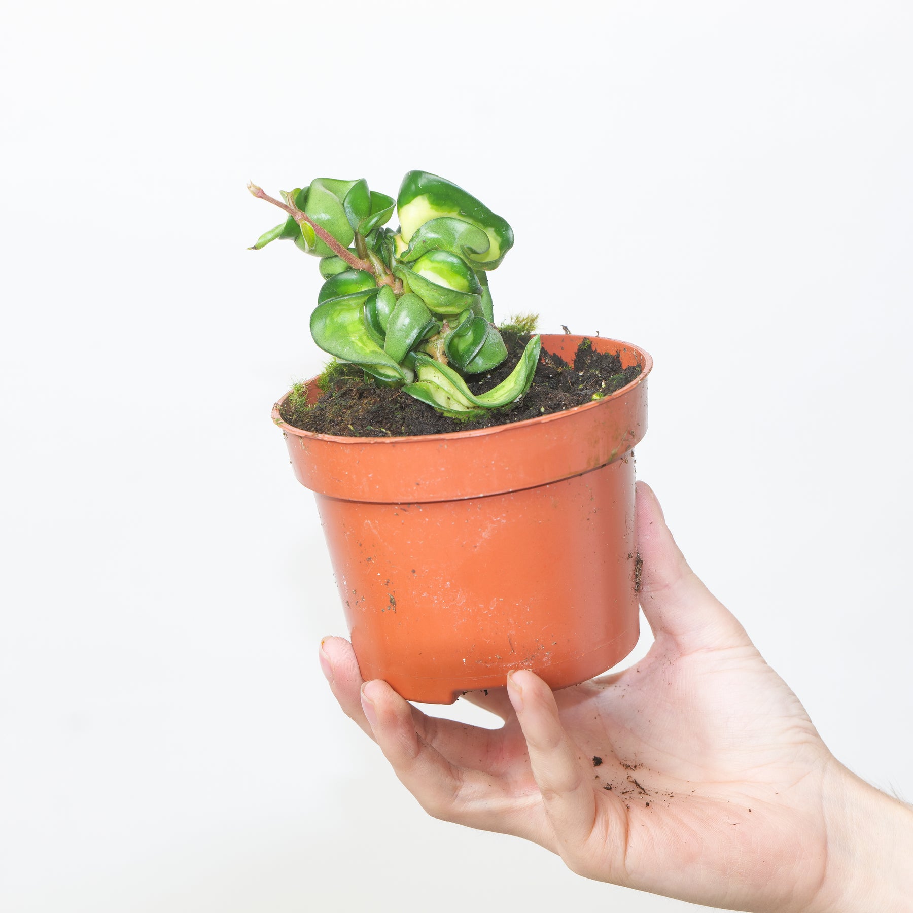 A stunning variegated cultivar of Hoya carnosa with tight leaves known colloquially as Hindu Rope
