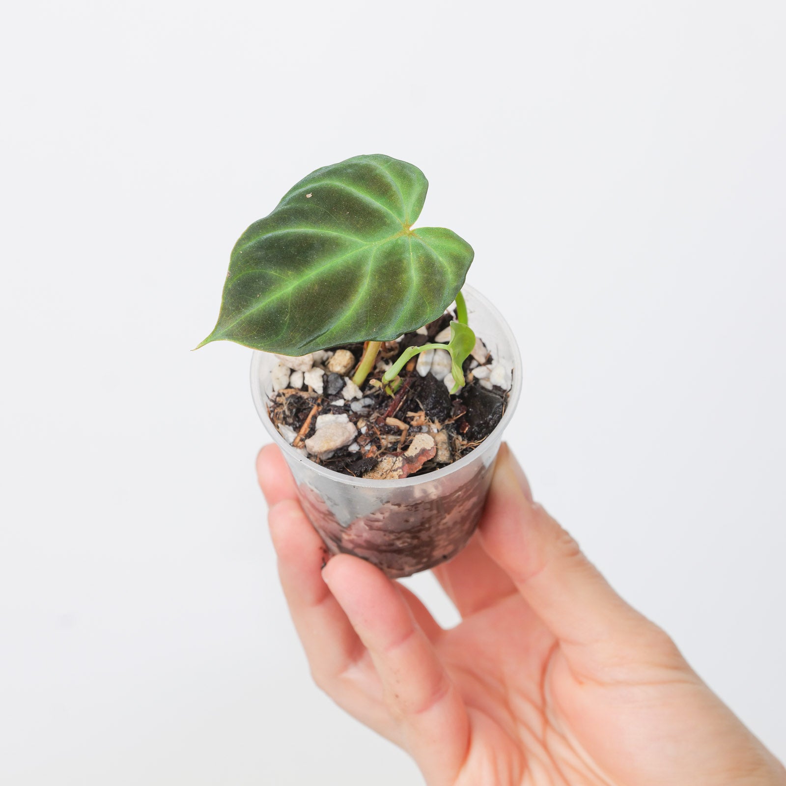 This is a very nice variation of Philodendron verrucosum Amazon Sunset, the underside of the leaf is a little greener but the front of the leaf has a very nice veining.
